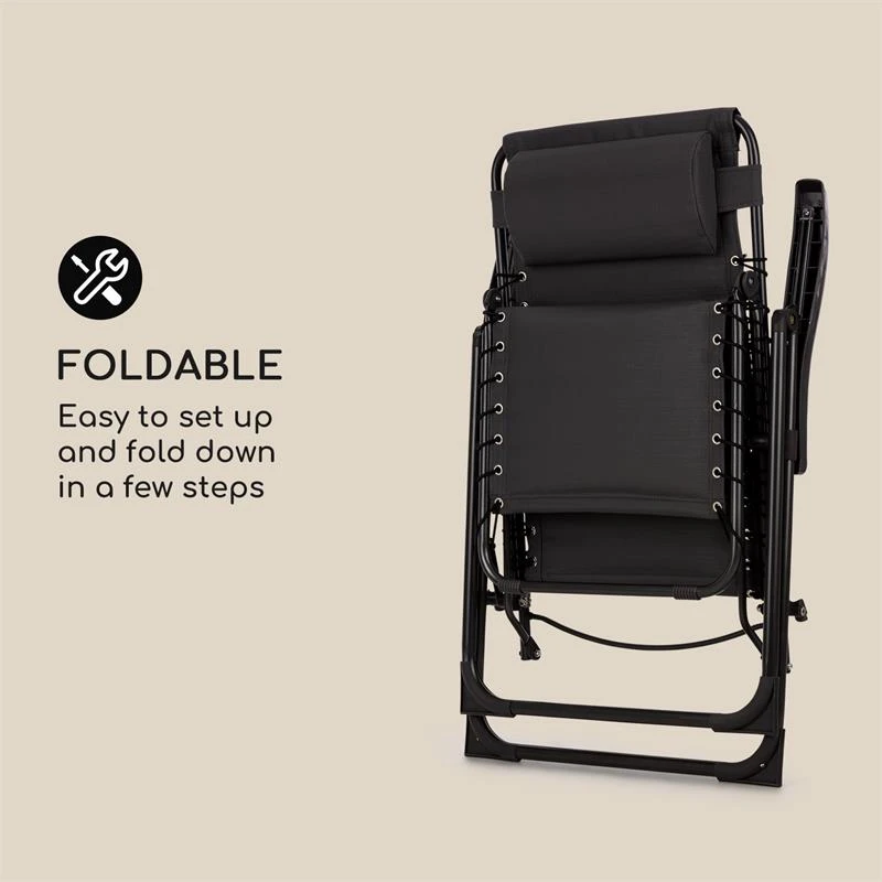 Blumfeldt California Dreaming Sonnenliege | 4 cm hohe Polsterung | verstellbare Rückenlehne | Stahlrahmen | abnehmbares und höhenverstelbares Kopfkissen | PureRelaxation System | ergonomisch | faltbar | wasserabweisend | atmungsaktiv | schwarz