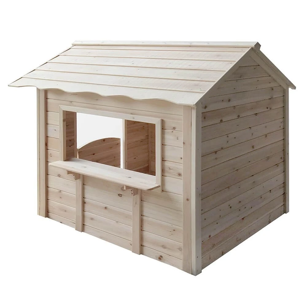 Lieber Interessent, bitte beachten Sie, dass das Holz bewusst unbehandelt ist. Sie haben hierdurch die Möglichkeit, das Spielhaus individuell zu streichen und Ihren Wünschen sowie Ihrer Gartengestaltung entsprechend anzupassen. Beispielsweise können Sie die Elemente lasieren oder lackieren, eine Wetterschutzfarbe auftragen oder Dachpappe, Dachschindeln, verzinkte Bleche oder Schieferplatten auf dem Dach des Hauses anbringen.