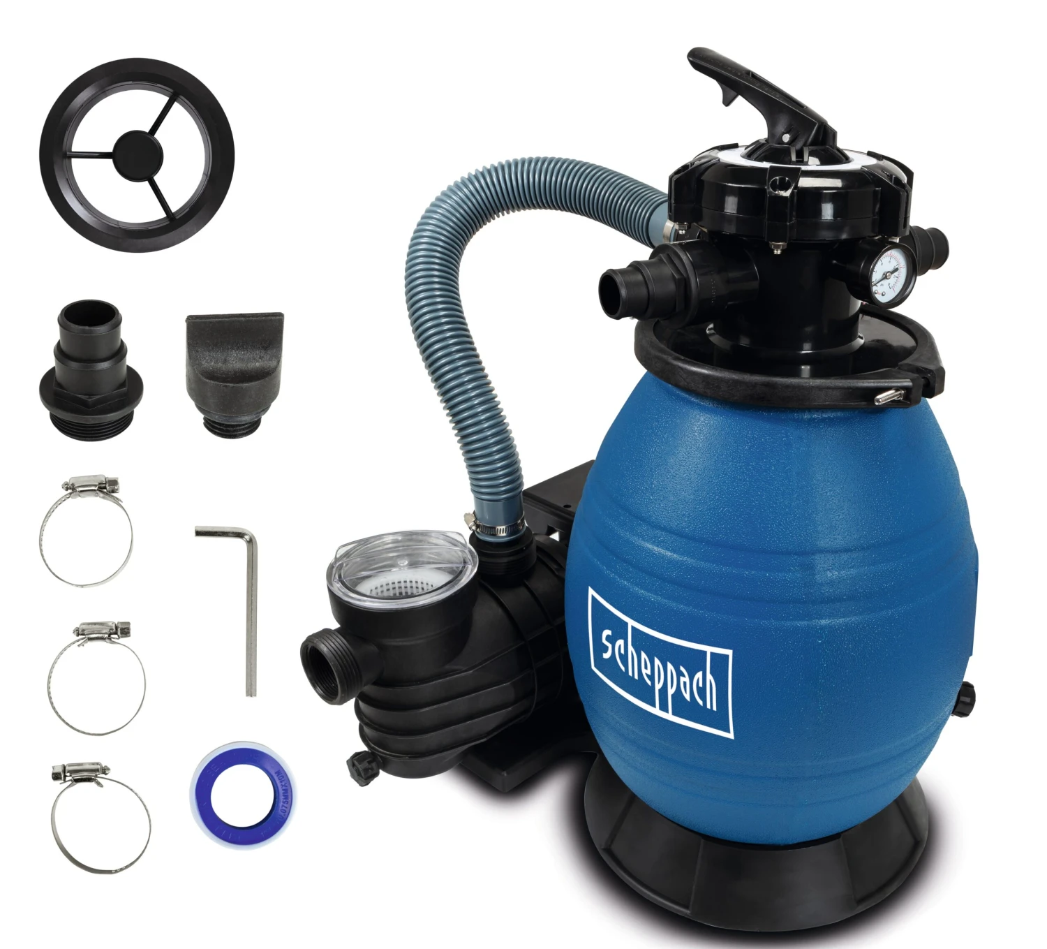 scheppach PSFA26 Pool-Sandfilteranlage 400 W, 220-240 V, 13800 L/h, 26 L Filtertank